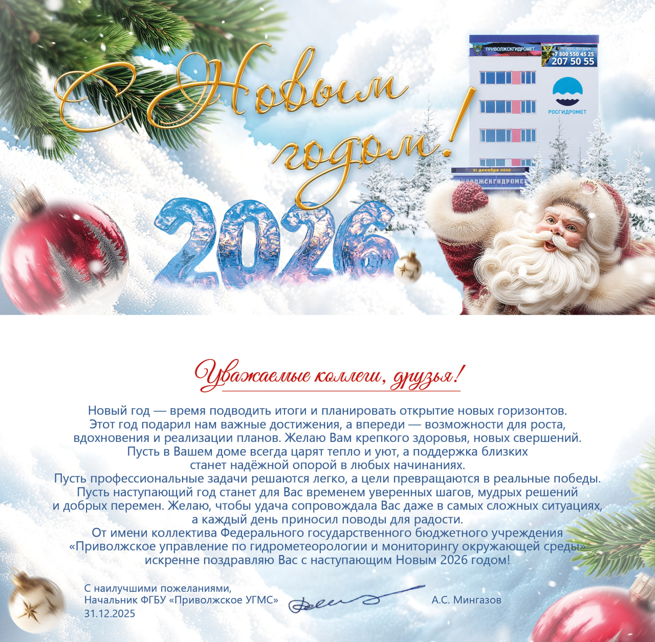 Новости В начало | Назад Страница 2 из 218 Далее От снегопадов к устойчивой морозной погоде 12 января 2026 г. 13:25 ФГБУ "Приволжское УГМС" Погода 10-12 января 2026 г. 9 января 2026 г. 16:56 ФГБУ "Приволжское УГМС" Погода 6-9 января 2026 года 5 января 2026 г. 15:48 ФГБУ "Приволжское УГМС" Средняя Волга - очередное снежное ненастье. 2 января 2026 г. 18:07 ФГБУ "Приволжское УГМС" Морозная погода Новогодних дней 29 декабря 2025 г. 14:08 ФГБУ "Приволжское УГМС" С наступающим 2026 годом! 29 декабря 2025 г. 12:17 ФГБУ "Приволжское УГМС" Прогноз погоды на январь 2026 года по территории ФГБУ "Приволжское УГМС" 29 декабря 2025 г. 9:02 ФГБУ "Приволжское УГМС" В ФГБУ "Приволжское УГМС" состоялся захватывающий интеллектуальный квиз "Гидрометштурм", который собрал 30 наших коллег из Самары и Тольятти!️ 26 декабря 2025 г. 13:37 ФГБУ "Приволжское УГМС" Зимний характер погоды 26 декабря 2025 г. 13:24 ФГБУ "Приволжское УГМС" Резкое похолодание на Средней Волге 22 декабря 2025 г. 14:56 ФГБУ "Приволжское УГМС" В начало | Назад Страница 2 из 218 Далее Всего новостей: 6574