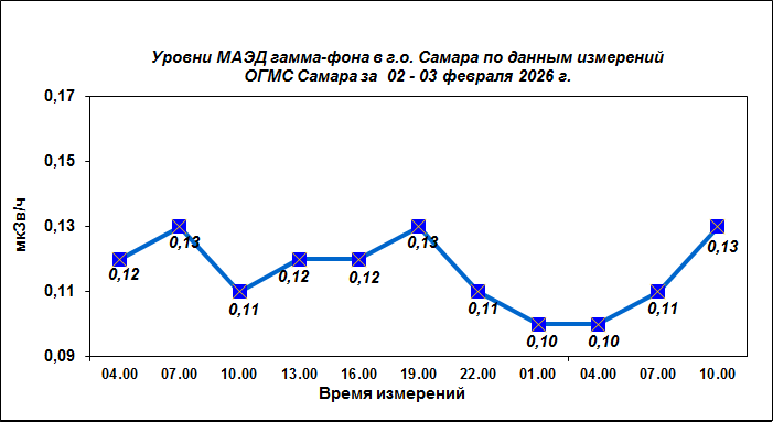 Результаты наблюдений за уровнем гамма-фона на метеостанции (ОГМС) Самара за последние сутки приведены на диаграмме: